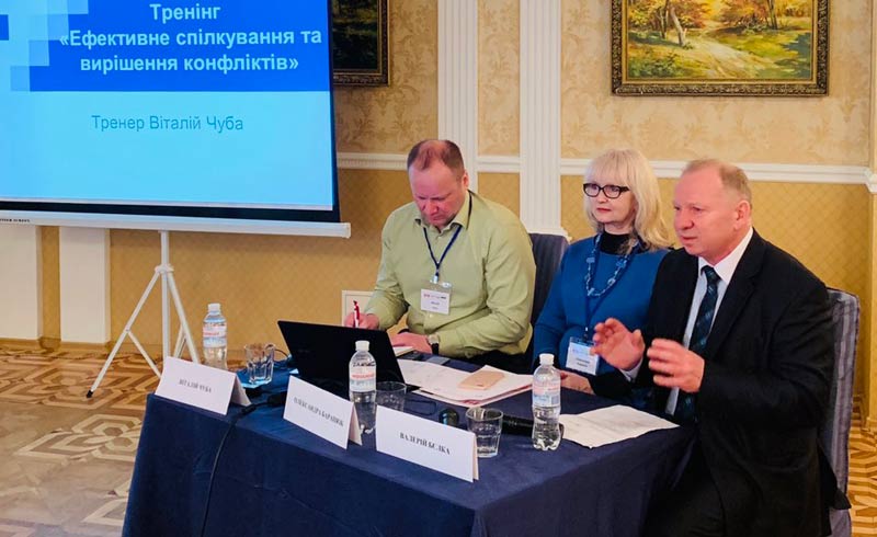У перший день тренінгу тренер розповів про складові ефективного спілкування, його алгоритм, основні стратегії поведінки в конфлікті та комунікаційні стратегії пом’якшення конфліктів.